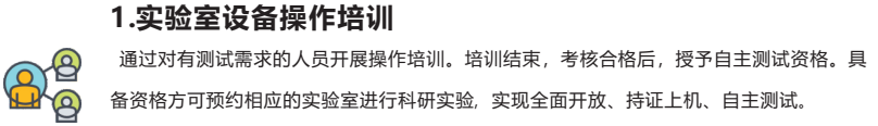 平台支持时间预约、 送样预约等多种网上预约形式,支持委托测试和自行操作等服务。